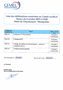 Liste des délibérations